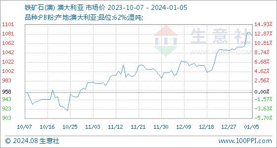 1月5日生意社铁矿石(澳)基准价为1085.22元/吨