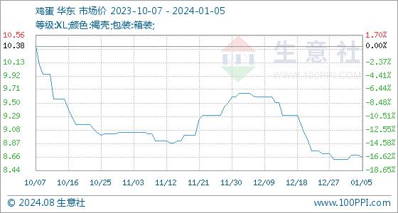 1月5日生意社鸡蛋基准价为8.68元/公斤