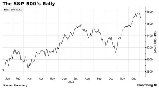 2022年底,科斯廷曾预计标准普尔500指数到2023年底只会上涨几个百分点,达到4000点,这让他成为众多一开始未能预测到24%的涨幅的策略师之一。在2023年底,该指数涨至4769.83点。