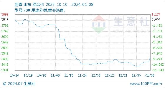 1月8日生意社沥青基准价为3468.00元/吨