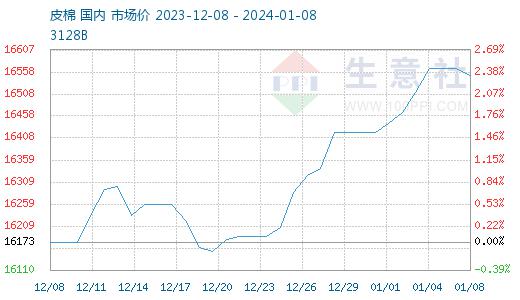 元旦后,受产业季节性补库等因素影响,棉价延续假期前的上行趋势,行情小幅回升。据生意社商品行情分析系统,1月8日3128B级皮棉现货价格在16550元/吨,较月初上涨0.78%。