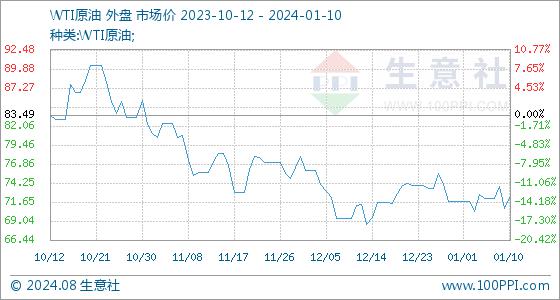 1月10日生意社WTI原油基准价为70.77美元/桶
