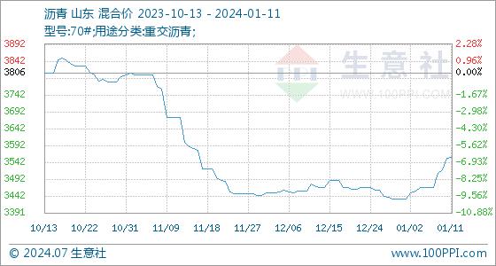 1月11日,生意社沥青基准价为3555.14元/吨,与本月初(3433.71元/吨)相比,上涨了3.54%。