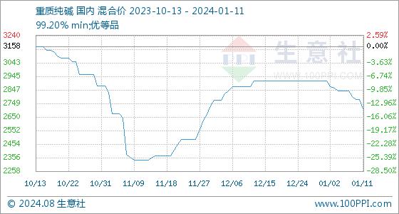1月11日生意社重质纯碱基准价为2780.00元/吨