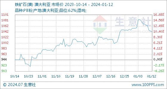 1月12日生意社铁矿石(澳)基准价为1045.00元/吨