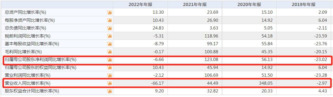 成长能力方面,近几年来整体表现较为波动。2019年至2022年,该公司营收同比增长率分别为-2.97%、348.05%、44.49%、-66.17%。营收增速表现并不稳定,其归母净利润同比增长率亦比较波动,同期增速分别为-23.02%、56.13%、123.08%、-6.66%。