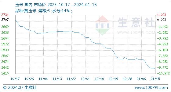 1月15日生意社玉米基准价为2440.00元/吨
