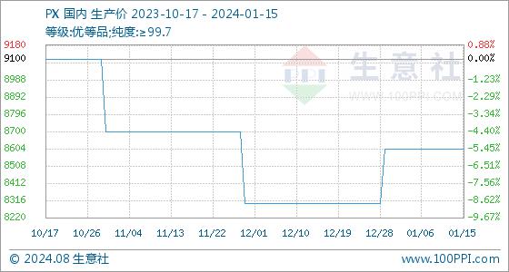 1月15日,生意社PX基准价为8600.00元/吨,与本月初持平。