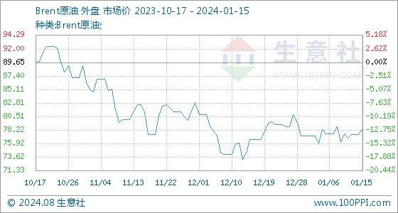 1月15日生意社Brent原油基准价为77.41美元/桶