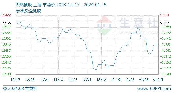 1月15日生意社天然橡胶基准价为12810.00元/吨
