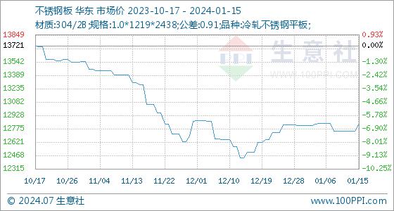 1月15日生意社不锈钢板基准价为12750.00元/吨