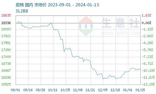 1月15日中国棉花指数3128B级均价16584元/吨,较上一日上涨10元/吨。