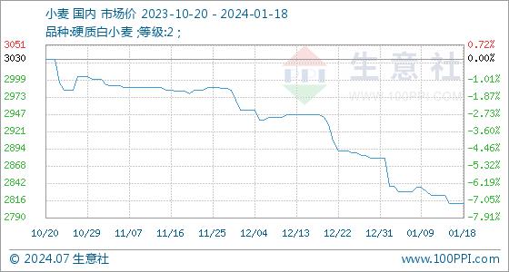 1月18日生意社小麦基准价为2812.00元/吨