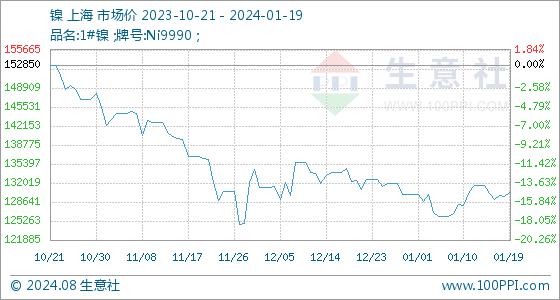 1月19日,生意社镍基准价为129650.00元/吨,与本月初(130033.33元/吨)相比,下降了-0.29%。