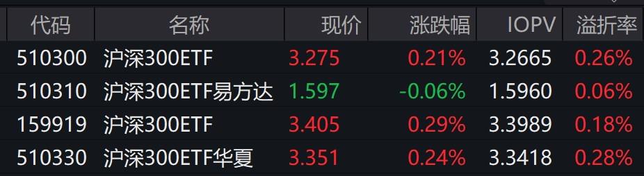 值得注意的是,跟踪沪深300指数的前4只规模较大的ETF今日合计成交额达257亿元,截至收盘,均出现溢价。