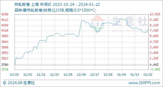 1月22日生意社热轧板卷基准价为4016.00元/吨