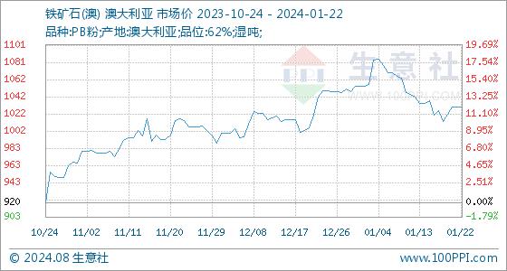 1月22日生意社铁矿石(澳)基准价为1030.11元/吨