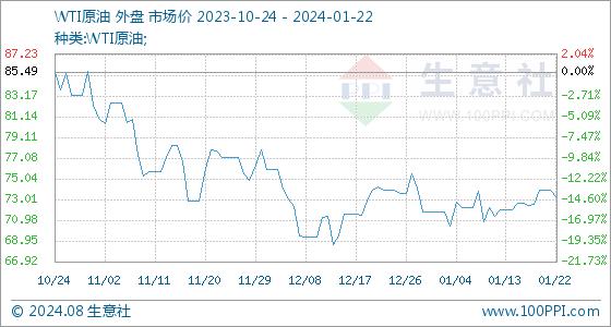 1月22日生意社WTI原油基准价为73.95美元/桶