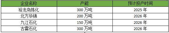 未来三年,国内仍有新增投放,预计新增产能投产如下: