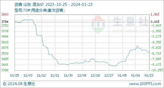 1月23日,生意社沥青基准价为3542.29元/吨,与本月初(3433.71元/吨)相比,上涨了3.16%。
