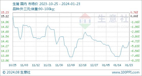1月23日生意社生猪基准价为14.28元/公斤