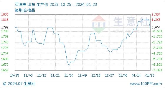 1月23日,生意社石油焦基准价为1820.00元/吨,与本月初(1720.00元/吨)相比,上涨了5.81%。