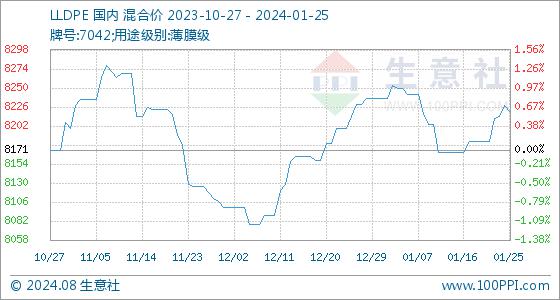 1月25日,生意社LLDPE基准价为8228.57元/吨,与本月初(8237.14元/吨)相比,下降了-0.10%。