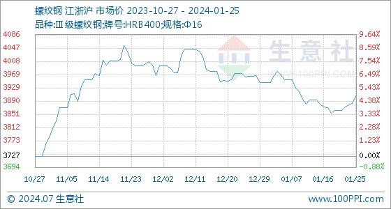1月25日生意社螺纹钢基准价为3884.00元/吨