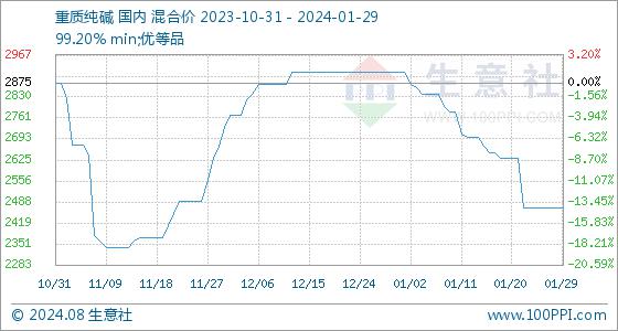 1月29日生意社重质纯碱基准价为2470.00元/吨