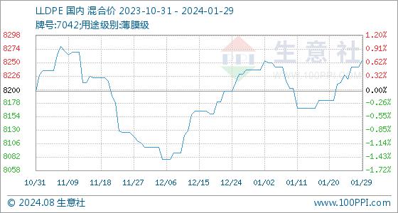 1月29日生意社LLDPE基准价为8242.86元/吨