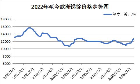 本周欧洲战略小金属锑价格上涨,至1月26日价格在12750美元/吨,上涨300美元/吨,目前供应偏紧,市场气氛偏强。