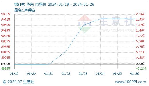 生意社:锑锭市场继续上行(1月19日至1月26日)
