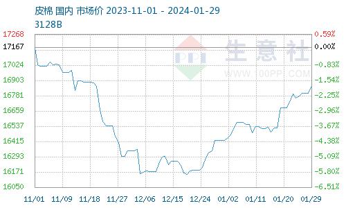1月30日中国棉花指数3128B级均价16942元/吨,较上一日上涨15元/吨。