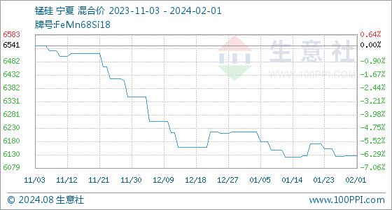 2月1日生意社锰硅基准价为6125.00元/吨
