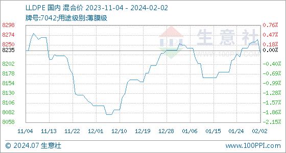 2月2日生意社LLDPE基准价为8264.29元/吨