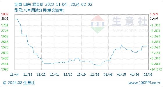 2月2日,生意社沥青基准价为3585.14元/吨,与本月初持平。