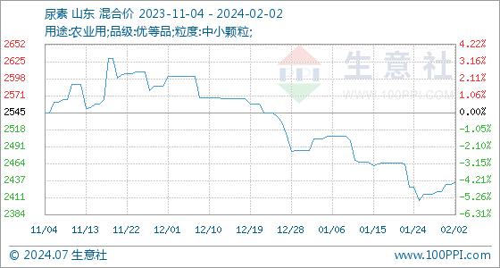 2月2日,生意社尿素基准价为2431.67元/吨,与本月初持平。