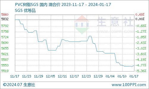 分析要点:1月17日PVC现货市场价格涨跌互现。厂家稳价为主,场内交投气氛一般,经销商价格较为灵活,市场成交谨慎。目前PVC SG5报价多在5280-5700元/吨左右。下游多观望,市场成交偏清淡。