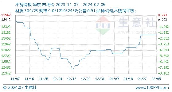 2月5日生意社不锈钢板基准价为13142.86元/吨
