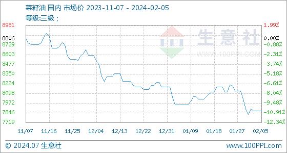 2月5日生意社菜籽油基准价为7868.33元/吨