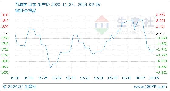 2月5日生意社石油焦基准价为1727.50元/吨
