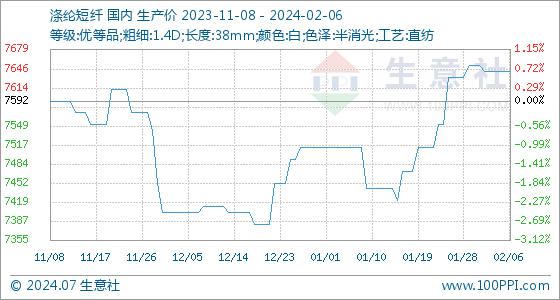 2月6日生意社涤纶短纤基准价为7642.00元/吨
