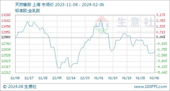 2月6日生意社天然橡胶基准价为12570.00元/吨