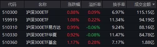 今天上至沪深300、下至中证1000,相关ETF都有放量成交。
