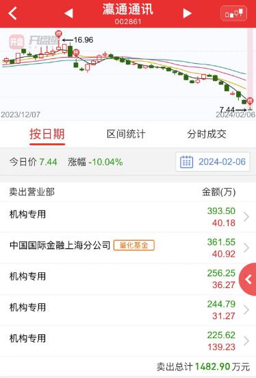 其中大部分榜单,来自盘中跌停的小盘股。在卖出一侧,出现了众多被市场公认的量化席位,下图为其中一例。
