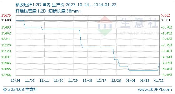 1月22日生意社粘胶短纤1.2D基准价为12840.00元/吨