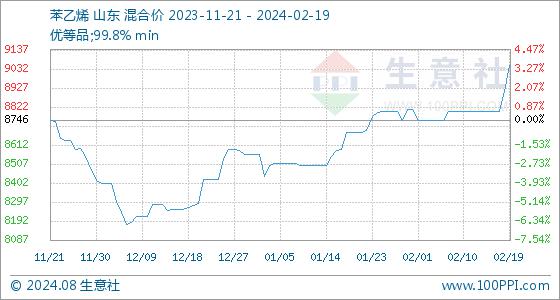 2月19日生意社苯乙烯基准价为8910.00元/吨