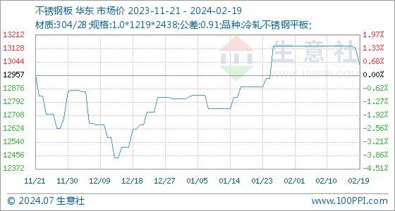 2月19日生意社不锈钢板基准价为13128.57元/吨