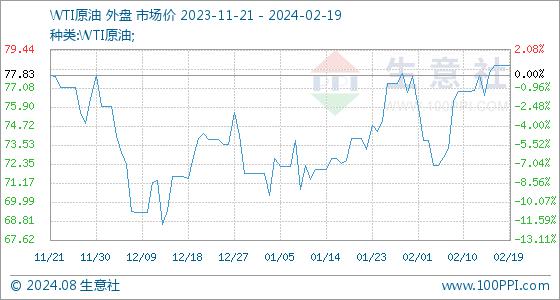 2月19日生意社WTI原油基准价为78.46美元/桶