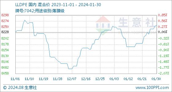1月30日生意社LLDPE基准价为8254.29元/吨
